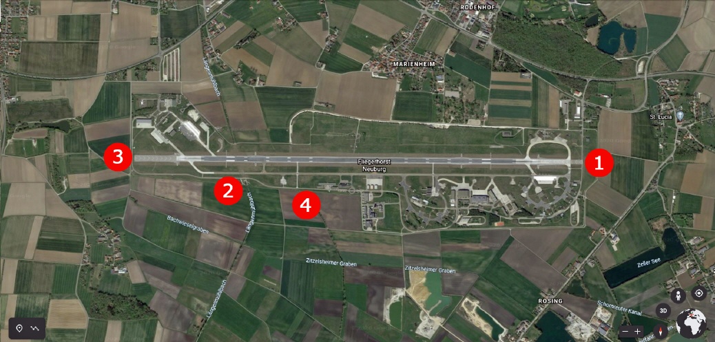 Hier habe ich die Spotterpunkte an denen man die besten Bilder machen kann bzw. auch darf, denn teilweise handelt es sich hierbei genau genommen um militärisches Sperrgebiet und es sonst zu Problemen kommen kann, falls man doch mal 'falsch steht'! Aus eigener Erfahrung kann ich sagen, dass das Militär so etwas überhaupt nicht lustig findet!