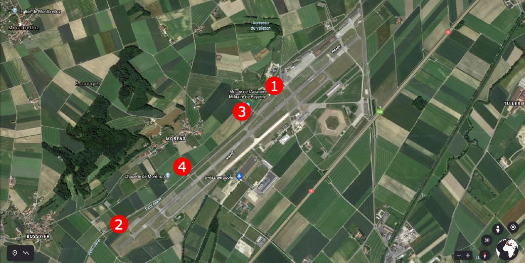 Payerne: Der größte und wichtigste Luftwaffenstützpunkt der Schweiz. Es beherbergt eine Vielzahl von Flugzeugen, darunter F/A-18 Hornets, und dient als Drehscheibe für Luftverteidigungsoperationen. Koordinaten: 46°50'54"N 6°55'12"E